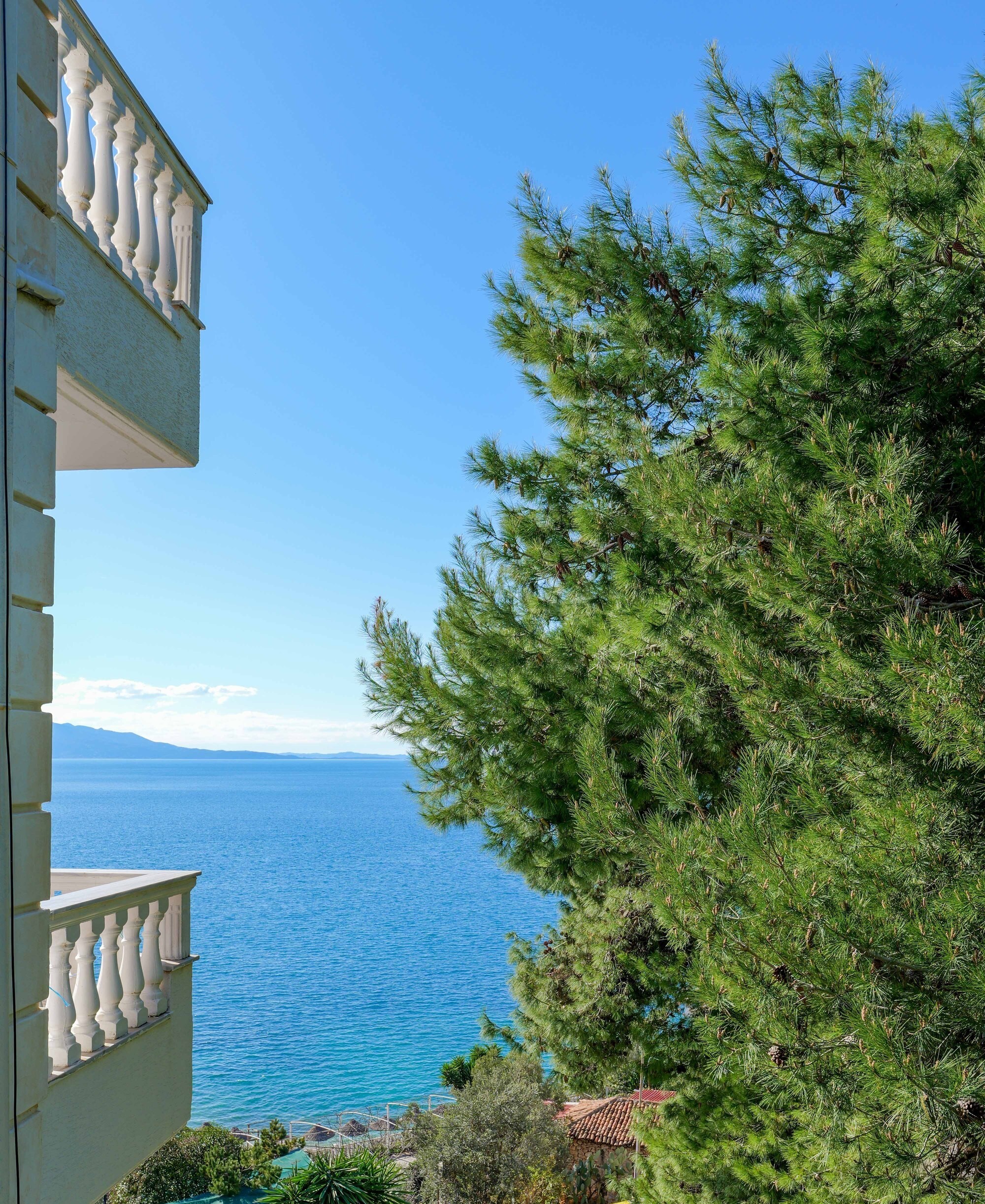 All rooms are air-conditioned and come with a balcony with either a partial or a full sea view.